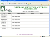 Se acaban de colgar de la página web los nuevos Calendarios de Actividades y Eventos del presente Curso 2006-2007, no sólo el general para todos los fraternos de Madrid, sino también los Calendarios de los diferentes Equipos. Se ruega, por tanto, a los Equipos de Barrio que me vayan enviando los datos para completar dichos Calendarios, a medida que vayan estableciendo fechas. Muchas gracias a todos por vuestra colaboración. EL WEB MASTER. |